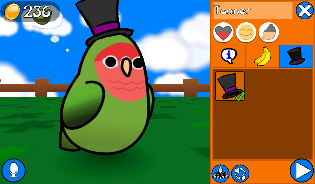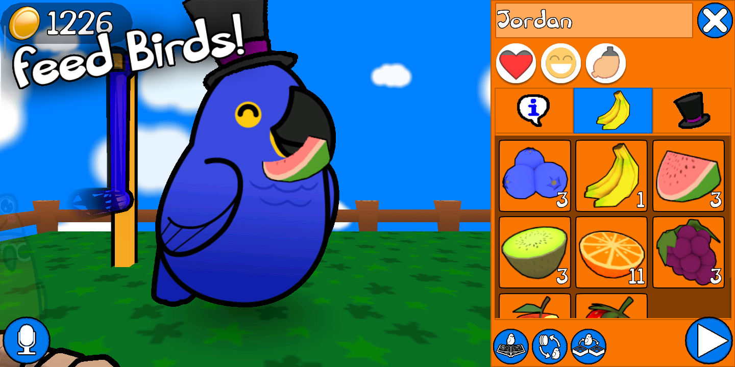 Selepas memberi makan, membersihkan, mengetuk dan bercakap dengan burung anda, anda boleh bermain permainan teka-teki untuk mendapatkan syiling untuk membeli lebih banyak burung, mainan dan sarang tambahan! Dengan lebih daripada 300 tahap dan mengira, ini sepatutnya membuat anda sibuk untuk seketika!
