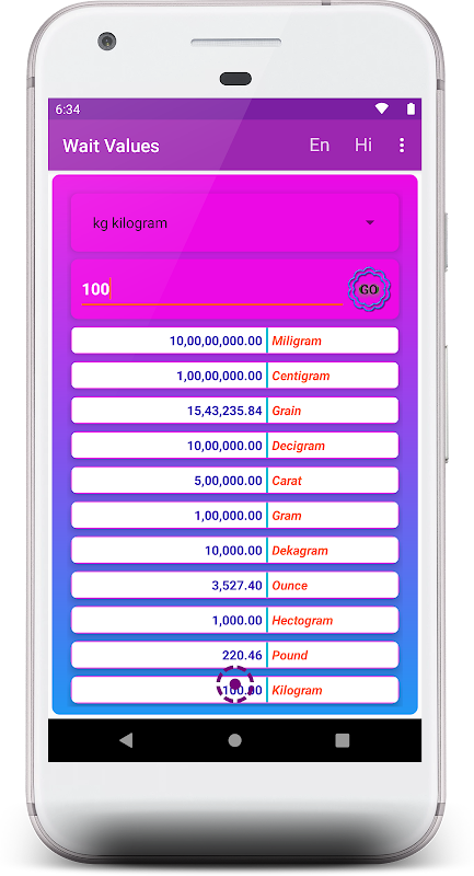 gunakan aplikasi ini untuk penukaran alat yang berbeza seperti tunggu, panjang, kawasan, suhu, tarikh & masa, data digital dan penukaran kelantangan, ini akan memaparkan maklumat ke dalam bahasa Inggeris, Hindi dan Telugu.