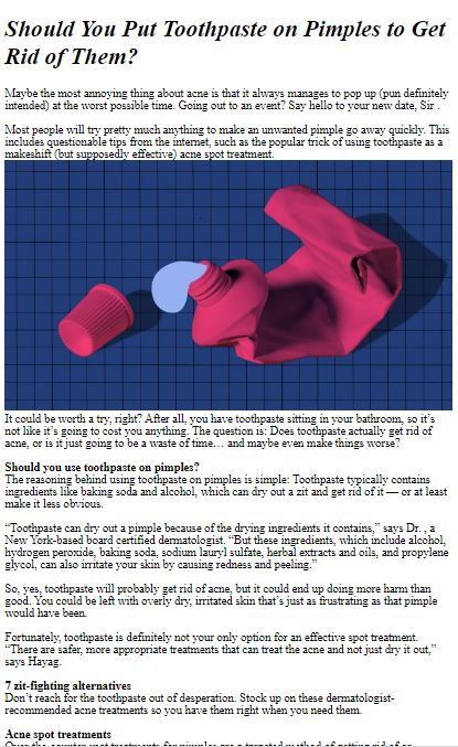 Toothpaste on a pimple, quite apart from offering no real benefit, may actually cause harm.