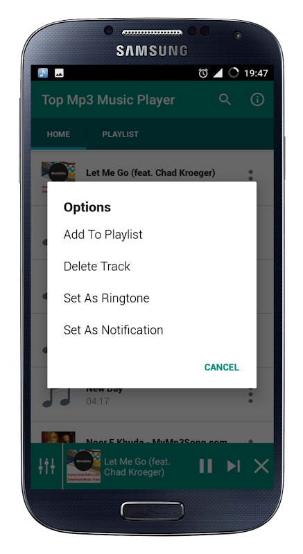 • Set song as ringtone sound or notification sound