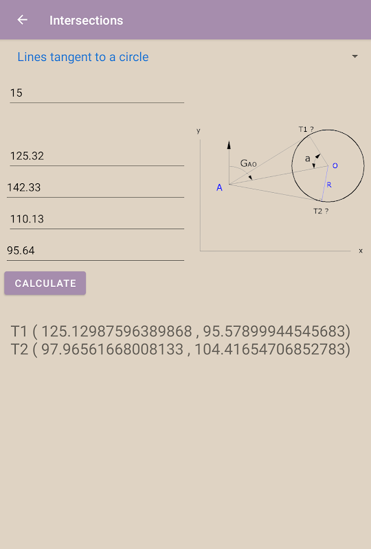 Nota Penting : Semua nilai sudut yang anda masukkan dalam apl mestilah dalam gradian . Jika anda memasukkan sudut dalam unit lain, hasilnya akan menjadi salah.