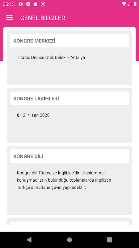 Türk Toraks Derneği 23. Yıllık Kongresi Resmi Android Uygulaması ile kongre öncesinde, sırasında ve sonrasında yayınlanan içeriklere, genel bilgilere, bilimsel program, konuşmacı bilgilerine ve detaylarına ulaşabilir, sunum ve bildiri bölümlerinden bildirilerin kısa detaylarını inceleyebilir izin verilen sunumları pdf olarak görebilirsiniz. Anlık bildirimler, duyurular ve favori bölümü ile oturumlardan, öğle ikramları gibi sosyal etkinliklerden haberdar olabilir, anket sistemimiz ile soruları cevaplayabilir, medya bölümümüzden kongre gazetesine, fotograflarını, videolarını takip edebilirsiniz.