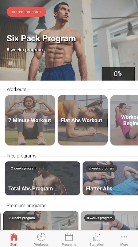 Jumlah Abs Program dengan latihan teras luar biasa untuk perut rata dan enam pek.