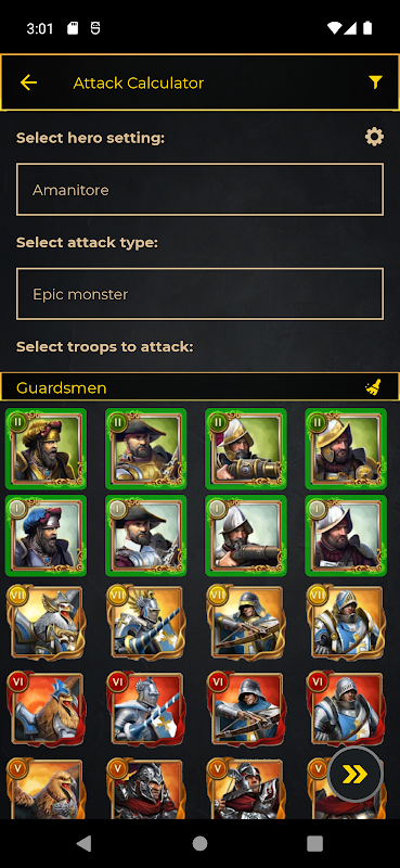 Mengira bilangan tentera yang diperlukan untuk berjaya menyerang raksasa, bos atau pemain lain.