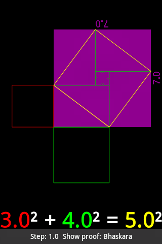 Aplikasi ini juga merupakan makmal kecil untuk menyiasat mengenai Teorema Pythagoras: