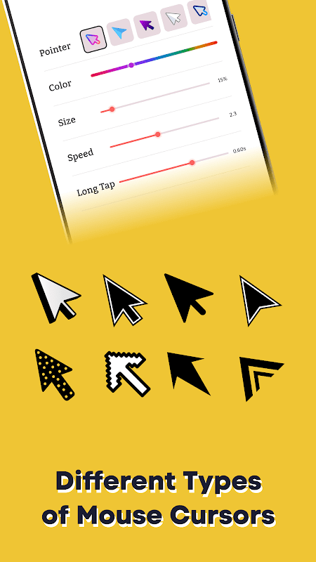 Apl penunjuk tetikus ini juga boleh digunakan apabila sesetengah kawasan skrin mudah alih anda tidak berfungsi atau rosak. Sekarang, navigasi melalui apl, semak imbas web dan libatkan diri dengan peranti anda dengan cara baharu dengan kawalan kursor pad sentuh.