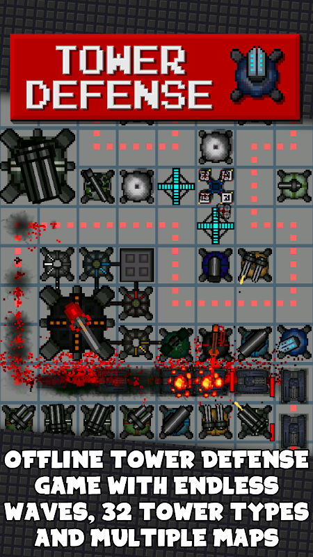 Bolehkah anda menahan pencerobohan selama yang anda boleh? Melawan gerombolan musuh dengan 34 jenis menara yang berbeza. Tukar jalan musuh dan cari strategi terbaik dengan kombo menara! Gabungkan 4 menara jenis yang sama untuk membina menara Mega gergasi! Pertahankan bandar! Luar talian, tidak ada urus niaga mikro dan tidak mengasyikkan, keseronokan lama di sekolah!