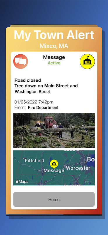 Semua orang yang menggunakan aplikasi "My Town Alert" akan menerima mesej yang dihantar daripada "Town Alert"