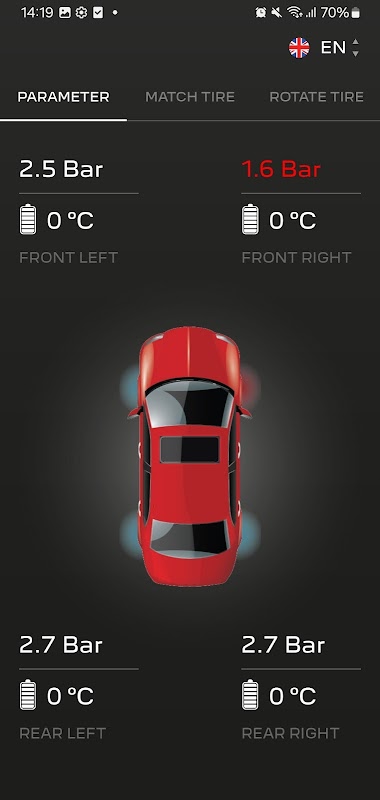 Pemantauan tekanan tayar yang dikeluarkan oleh Thaco melalui Bluetooth