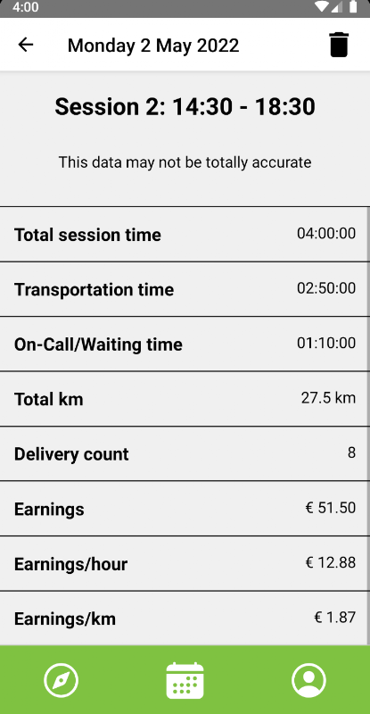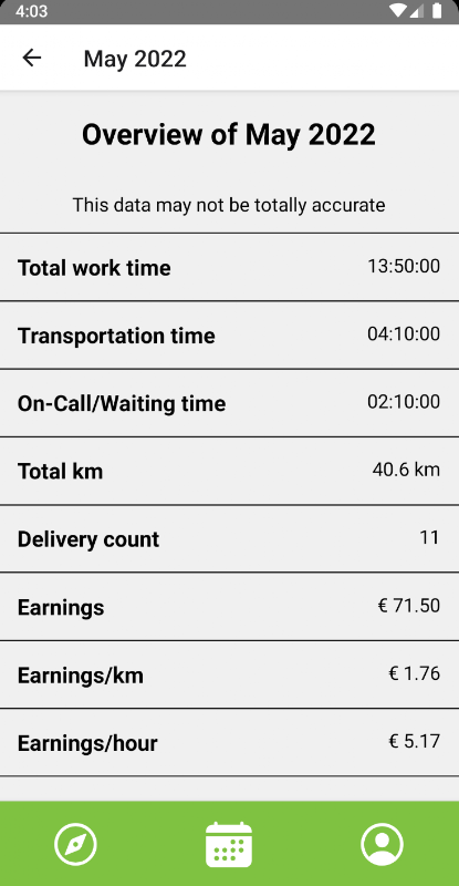 Adakah anda seorang penunggang penghantaran makanan dan ingin tahu berapa lama anda menunggu tanpa gaji, berapa kilometer anda menaiki, berapa pendapatan anda setiap kilometer dan banyak lagi? Pasang 'Jejaki Hak Saya', gunakannya semasa menghantar dan ketahui jumlah yang anda perolehi untuk jumlah jam anda bekerja.