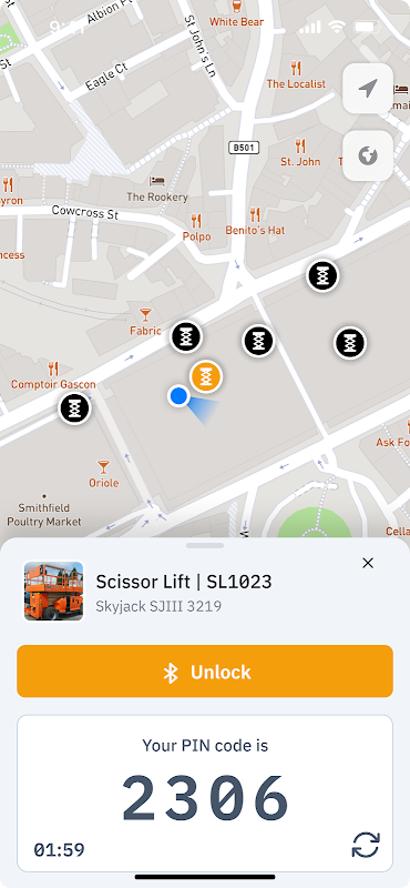 Trackunit On merevolusikan pengurusan peralatan dengan menyediakan pengendali senarai terkini mesin yang tersedia di seluruh tapak kerja, ditambah dengan pilihan kunci akses untuk membuka kunci peralatan pembinaan armada campuran dengan mudah dan selamat mengikut kebenaran yang telah ditetapkan.
