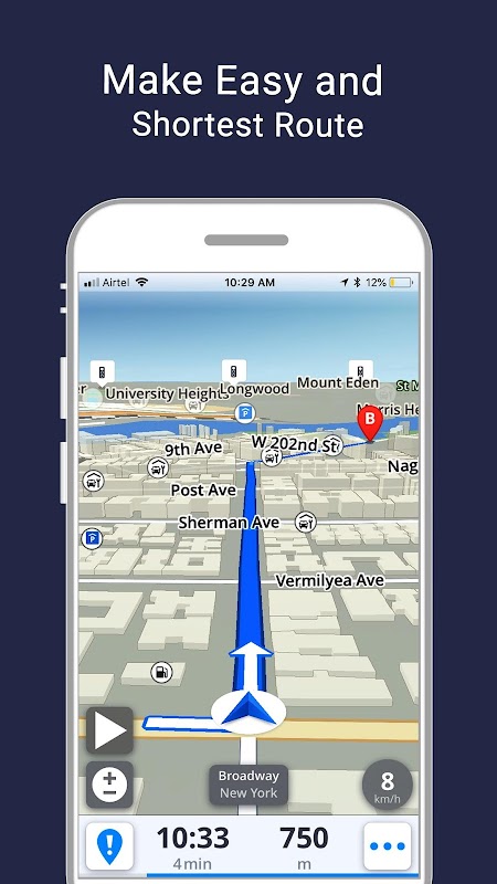 • Find all Nearby Places: Drive to the nearest ATM, school, hospital, bus station or amusement part with less traffic and in the shortest route possible.