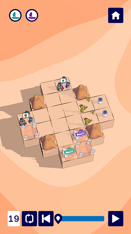 Rancang laluan anda dengan melukis laluan merentasi grid padang pasir. Semua kapal pasir mesti mengikut jejak mereka tanpa melawat ruang yang sama dua kali - dan tanpa bertembung antara satu sama lain. Dengan setiap laluan yang anda lakar, anda sedang membina rangkaian laluan merentasi bukit pasir.
