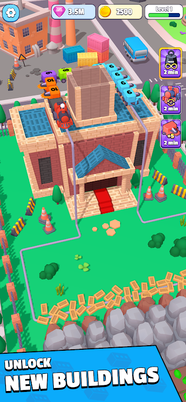Dengan setiap ketikan, anda akan melihat empayar anda berkembang dan berkembang. Daripada memotong batu bata dengan ketepatan hingga menggabungkan troli untuk pembinaan yang lebih pantas, anda akan kagum dengan monumen yang boleh anda bina—semuanya dari tapak tangan anda. Bahagian yang terbaik? Anda tidak akan percaya apa yang anda mampu bina pada telefon pintar anda!