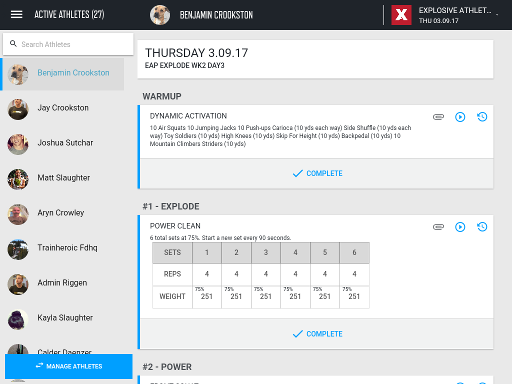 Sebaik sahaja anda berada jurulatih, menggunakan TrainHeroic Pasukan Latihan App - yang direka khas untuk Tablet - untuk memuatkan semua latihan atlet anda sekaligus dan bertukar-tukar daripada atlet atlet, pembalakan nombor mereka kerana mereka menamatkan latihan jadi semuanya ditangkap lancar .