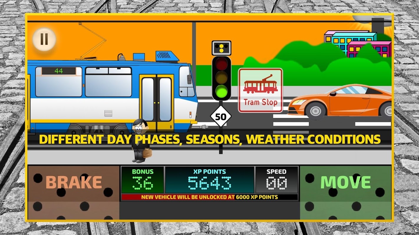Menjadi pemandu trem dan selamat mengangkut semua penumpang di seluruh bandar!