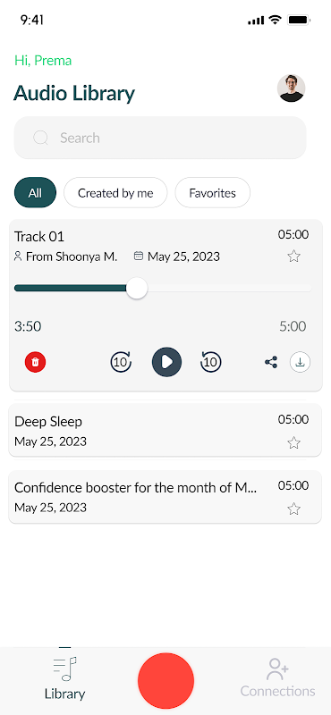 Aplikasi kami memudahkan rakaman dan penjejakan fail audio untuk ahli terapi sambil turut membantu pelanggan mengatur dan menjejaki rakaman mereka sendiri.