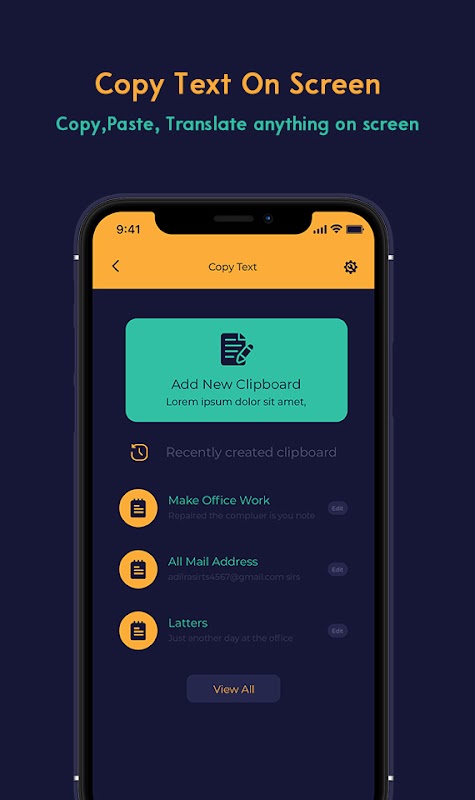 salin teks pada skrin ialah aplikasi yang sempurna yang membolehkan anda menyalin mana-mana teks daripada imej atau dari skrin telefon dengan mudah. Anda boleh menambah teks dalam salinan universal semua apl sekali dan menyalinnya ke papan keratan setiap kali anda memerlukannya tanpa menaip lagi. Salin teks dari skrin ialah penyelesaian mudah untuk menyalin dan mengekstrak semua teks daripada imej. Buka kamera atau pilih foto dari galeri untuk menyalin semua teks.