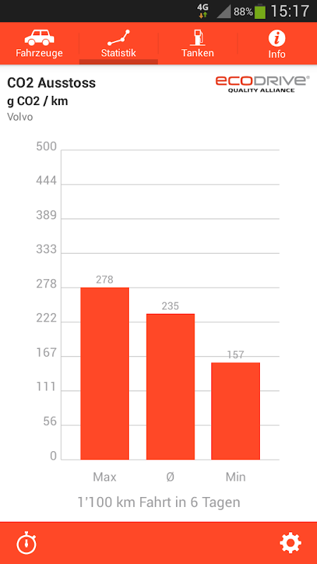 Es können mehrere Fahrzeuge erfasst und separat ausgewertet werden. Für die Auswertungen steht eine Vielzahl von Grafiken zur Verfügung, der jeweilige Betrachtungszeitraum kann dabei frei gewählt werden.