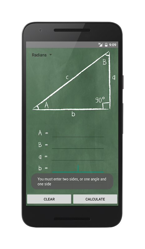 Dengan aplikasi ini Anda dapat memecahkan segitiga memperkenalkan tiga sisi, atau dua sudut dan sisi, atau satu sudut dan dua sisi. Anda juga dapat memecahkan segitiga sudut yang tepat memperkenalkan dua sisi, atau satu sudut dan satu sisi untuk menemukan nilai-nilai yang tersisa dari segitiga melalui trigonometri.