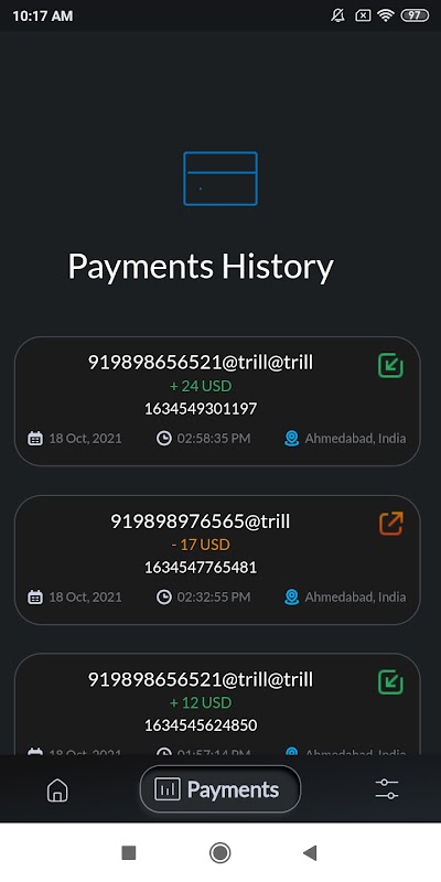 Pay with sound! TrillPay enables you to use the ground-breaking data over sound technology to conduct transactions. Send and receive money over a secure channel bolstered with encryption. By sending data reliably over sound waves, TrillBit empowers any device with a microphone and a speaker to complete financial transactions.