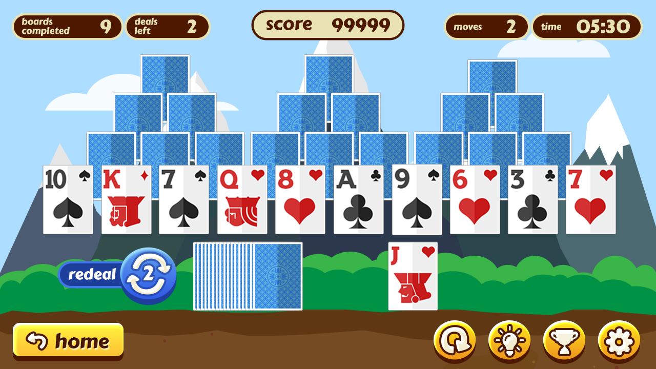 Main direka indah PERCUMA TriPeaks Solitaire kami (Juga dikenali sebagai Triple Peaks, Three Peaks, dan Tri Towers) Permainan untuk berehat.