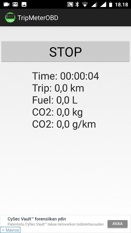 TripMeter OBD menunjukkan masa penggunaan, jarak, bahan api dan pelepasan CO2 yang digunakan dari kereta.