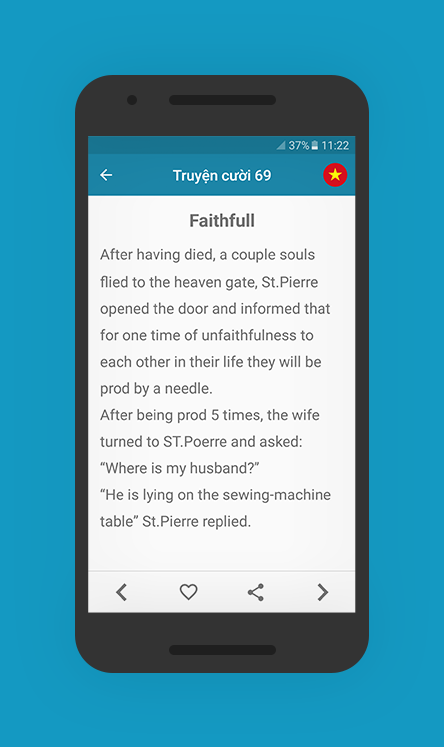 Với hàng trăm câu chuyện song ngữ ANH - VIỆT hài hước, các bạn có thể tạo nên những tiếng cười sảng khoái trong cuộc sống vừa có thể nâng vốn kiến thức về tiếng Anh của mình qua các câu chuyện cười.