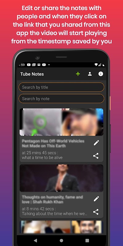 Kongsi pautan video dan pilih "Nota Tube" dari menu kongsi.