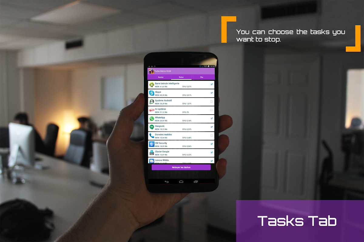 Kami memastikan bahawa persediaan Ram Turbo Accelerator dengan cara cepat dan mudah untuk anda untuk mengenal pasti dan membersihkan data yang tidak diingini dan proses disimpan di dalam cache telefon anda. Ini juga boleh meningkatkan kelajuan telefon pintar.