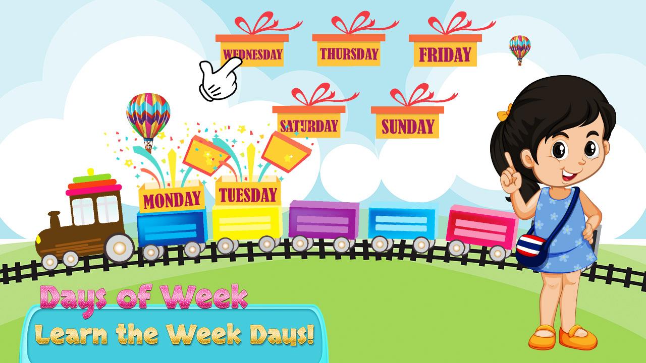 • Four different educational games (Clock time, Seasons, Week days, Months of the year).