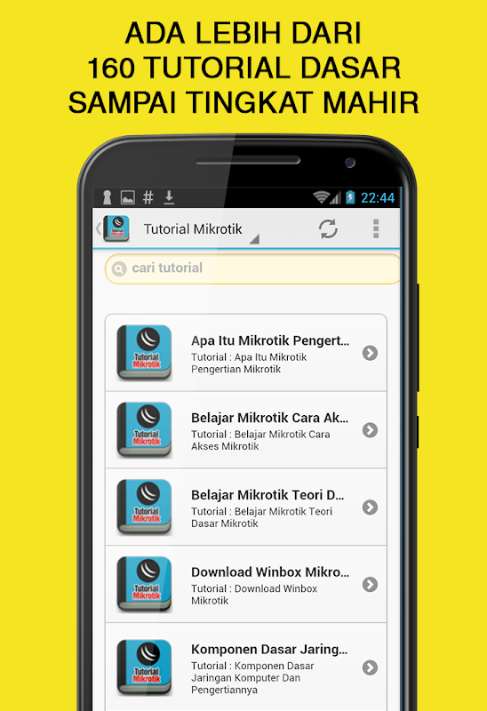 Aplikasi ini bertuuan untuk membantu anda mengenal dan belajar berbagai hal tentang mikrotik mulai daripengetahuan dasar, pemahaman istilah-istilah, hingga tutorial mahir. Di dalamnya ada lebih dari 150 tutorial tentang mikrotik yang dilengkapi dengan ilustrasi jelas dan penjelasan step by step. Tunggu apalagi, bagi anda yang sedang belajar mikrotik wajib instal aplikasi ini.