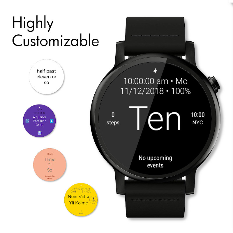 Ringan dan ciri dibungkus Pakai OS Watch Face yang memaparkan masa dalam kata-kata.