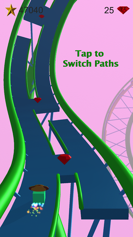 Two Paths gameplay combines the best action of an endless runner with the thrill of a roller coaster. Follow the correct path that extends infinitely through all the twist, turns, and loops of the wildest roller coaster imagined at any amusement park.