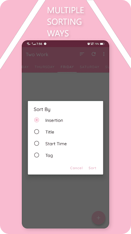 'Two Work - Routine Planner' direka bentuk sedemikian rupa sehingga ia akan memaparkan pemberitahuan anda mengikut jadual rutin anda. Jika anda lupa rutin anda supaya ia akan mengingatkan anda. Semua rutin yang telah selesai akan dinyahtanda pada hari pertama (Isnin) dalam seminggu.