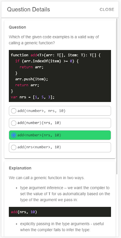 📚 Setiap soalan TypeScript disertakan dengan penjelasan yang jelas, membantu anda memahami konsep TypeScript di sebalik kod dan mengembangkan kepakaran TypeScript anda.