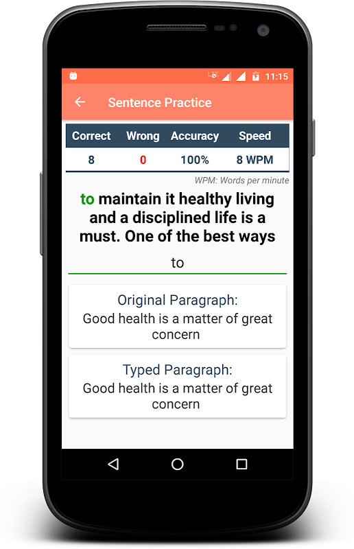 Aplikasi Uji Kelajuan Menaip berguna untuk menguji / mengukur kelajuan menaip pengguna. Belajar menaip dan cari seberapa pantas anda boleh menaip. Aplikasi ini mempunyai banyak pelajaran menaip percuma dengan pilihan seperti menaip keras / sederhana / mudah untuk melakukan latihan menaip dalam talian dan belajar menaip. Huruf diserlahkan untuk menolong anda fokus menaip. Anda boleh menjadi master menaip dengan bantuan aplikasi ini atau boleh bermain permainan menaip untuk bersenang-senang. Anda perlu menambahkan papan kekunci khusus bahasa untuk menaip bahasa tersebut.
