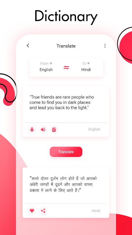 -Copy to Translate: Copy words or sentences in any app and get meaning instantly. (Notice: Not available in Android 10.0+ due to access restriction.)