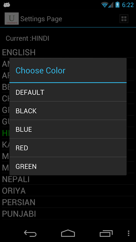 # Turun fon anda dari menu dalam halaman tetapan Ukeyboard.