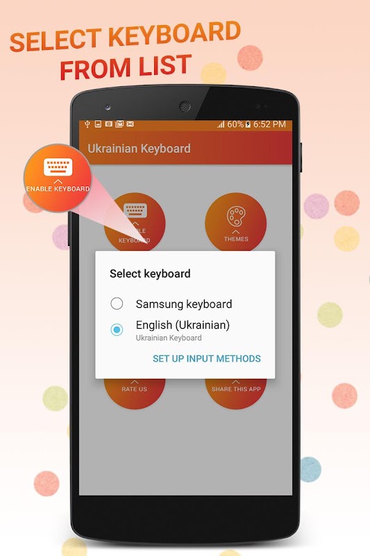 - If you want to turn it into Ukrainian keyboard just turn Ukrainian keypad for Android in settings and update your status and sent messages to your loved ones.