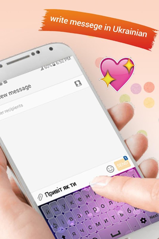 With the help of Ukrainian keyboard you will write in Ukrainian language. You can write emails and update your status on all social platforms. you can use Ukrainian keyboard with all messenger apps to write messages in Ukrainian language through Ukrainian typing app. By Ukrainian Keyboard you can write in Ukrainian language in your cell phone .you can use Ukrainian typing app chatting/messenger apps.