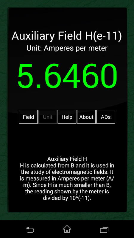 AMBIL PERHATIAN bahawa aplikasi ini menggunakan penderia magnet. Jika telefon anda tidak mempunyai penderia ini, aplikasinya TIDAK akan memaparkan sebarang ukuran. Jika anda membuka apl dan bacaannya 0 bermakna apl ini tidak boleh berfungsi pada telefon anda. Elakkan juga meletakkan telefon anda berhampiran peranti elektrik berkuasa seperti pengubah kuasa kerana anda mungkin merosakkannya. Gunakan atas risiko anda sendiri.