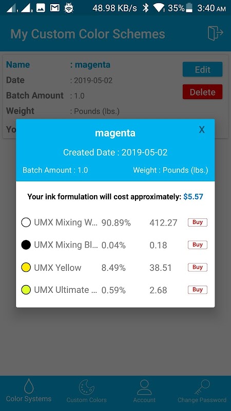 Ini adalah yang paling serba boleh dan terkini sistem pencampuran warna setakat ini. Jumlah Ink Solutions telah melabur sumber yang luar biasa untuk membangunkan cara yang berkesan yang paling tepat dan kos untuk mana-mana kedai sama ada kecil atau besar untuk menawarkan warna adat dipadankan, serta kedai dicipta warna adat khusus untuk pelanggan. Menggunakan sistem UMX baru akses akaun anda kini mudah alih, dan anda boleh melihat warna untuk campuran dari mana-mana peranti mudah alih yang menggunakan aplikasi mudah alih yang baru.