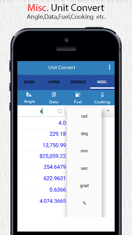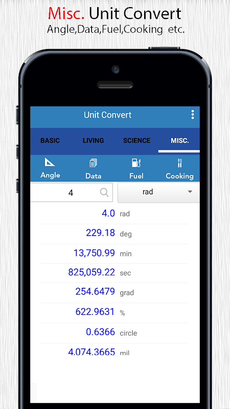 4. Misc. : angle, data, fuel efficiency, cooking, radiation, prefix, binary, time zone, blood sugar, AWG