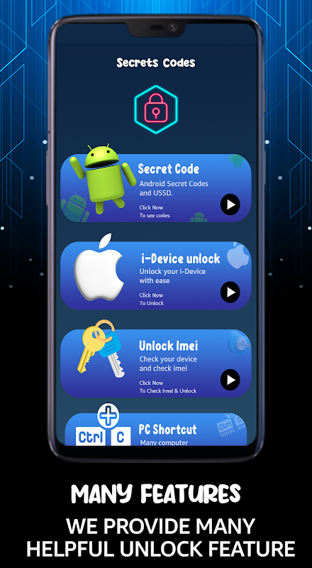 Apl kami menyediakan teknik yang berbeza untuk membuka kunci mana-mana peranti. Kami menawarkan buka kunci perisian, buka kunci helah dan buka kunci rangkaian, yang membimbing pengguna ke tapak web tertentu yang menawarkan petua berguna untuk membuka kunci mana-mana peranti.