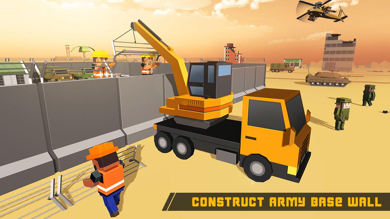Ia adalah masa peperangan besar zaman itu. Negara lain adalah sekutu dan cuba memusnahkan Negara Amerika Syarikat; mereka tahu bahawa satu-satunya cara untuk mempunyai kerosakan besar ialah memusnahkan kawasan tentera AS; mereka telah memusnahkan semua jawatan pemeriksaan tentera negara mereka sekarang dengan cara memusnahkan kawasan pangkalan tentera sehingga, kita perlu bersiap sedia untuk pembinaan dinding keselamatan tentera dan menjadi pahlawan di sekitar istana kawasan pembinaan tentera. Bina dinding keselamatan berhampiran lapangan terbang bandar juga dan melibatkan pembina landasan dengan anda kerana anda perlu membuat kapal terbang helipad di pangkalan tentera untuk kecemasan berlepas dan mendarat untuk membantu penduduk bandar AS. Menjadi mudah & nikmat dengan membahagikan beban dengan bantuan pembinaan kren dan tenaga kerja dan kereta kuda. Gali kawasan untuk menyesuaikan tiang dinding keselamatan untuk menjadikan dinding perlindungan yang kuat.