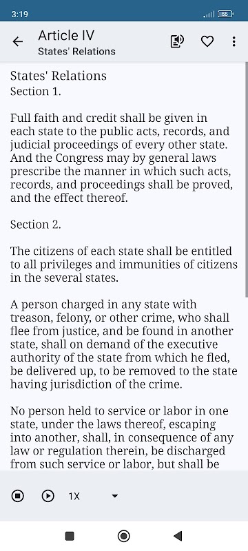 "Setiap warganegara dari yang paling muda hingga yang paling tua hidup dalam konteks undang-undang yang kompleks - dengan hak, tanggungjawab, urus niaga, piawaian, proses, prosedur, implikasinya selalunya tidak difahami dengan sempurna, dan diserahkan kepada pakar." Jadi apa tunggu lagi untuk memuat turun aplikasi ini dan membaca Perlembagaan Amerika Syarikat