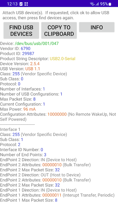 Uji kemampuan Host USB peranti anda dengan menyenaraikan peranti USB yang terpasang.