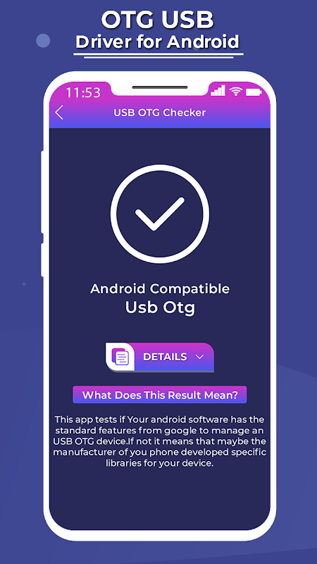 USB OTG Checker - OTG USB Driver for Android app provide information to device attach to USB OTG. Application has a simple and intuitive interface. USB OTG Checker is an app that lets you read USB flash drives and sd card readers from an android phone. File Manager allows you to handle any file or folder whether they are stored in your device, SD cards, or cloud storage accounts.