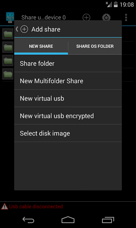 Berkongsi fail yang dipilih. Un / disulitkan cakera maya melalui Usb (UMS) mod Storan Massa